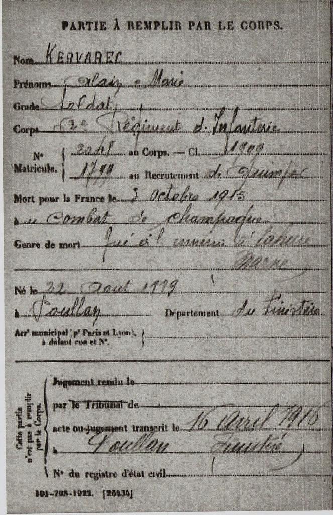 Alain Kervarec Livret militaire